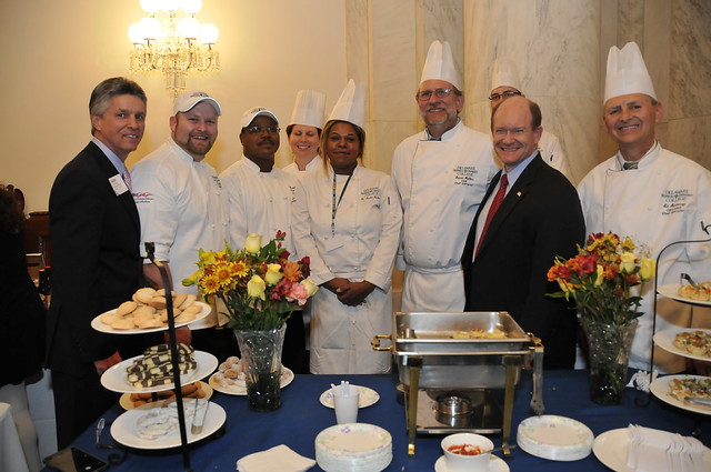 Hundreds of guests crowded into the Kennedy Caucus Room in the Russell Senate Office Building last Thursday for a chance to sample food and drinks from some of Delaware’s best eateries at the 4rd Annual Taste of Delaware celebration. Co-hosted by the Delaware State Chamber of Commerce and Senator Coons, the tradition brings together Delawareans and D.C. guests to enjoy the finest of the first state’s eats.