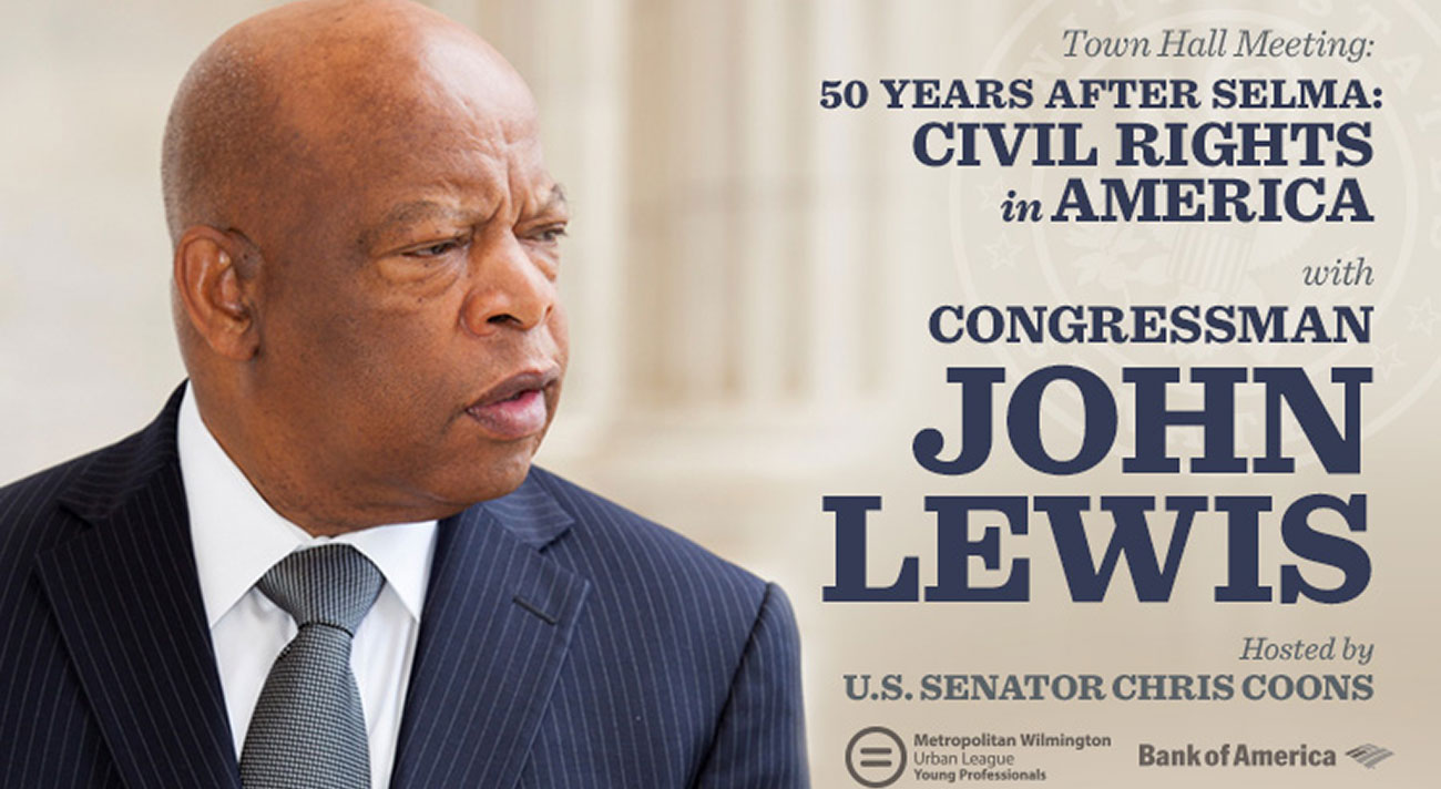 WILMINGTON, Del. – Civil rights icon and U.S. Representative John Lewis (D-Ga.) will travel to Wilmington, Delaware on June 5 to join U.S. Senator Chris Coons and Congressman John Carney for a town hall discussion at the Baby Grand Theater. Senator Coons and Representative Lewis will discuss and take questions on a wide range of civil rights issues, including recent events in Baltimore, New York, and Ferguson, Mo.